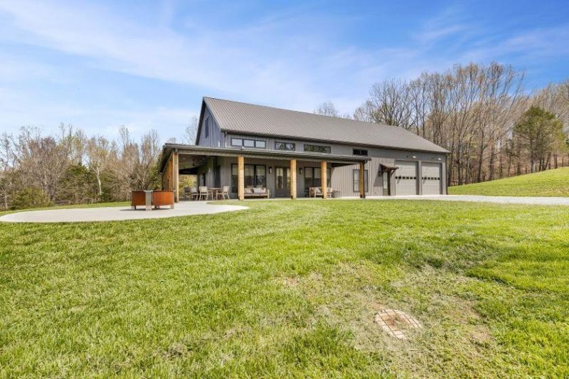 Gorgeous, Luxury Home near Lake Barley in KY, minutes from Interstate 24! Everything you will ever need for enjoying the outdoors and entertaining the whole family and then some! Elbow room and comfort to go with style and nouveau-rustic ambiance! Twelve foot ceilings and open concept floor plan is perfect for family time and stylish, creative decorating! Large kitchen with gas stove, plenty of solid surface counter space, and beautiful cabinetry. You will fall in love with this custom 4/5 BR barndominium with large laundry room, 3 full baths, enormous family room, and exquisite walk-in closets! Roll in tile shower in master bath for wheel chair access. HES energy net internet available, gas appliances, and fireplace. Huge loft with closet and bathroom! An entertainment room and an additional bedroom upstairs with a full bath! Outdoor concrete pathways and patio for clean, relaxing and enjoying nature! Nest doorbell cameras on all exterior doors for your cautionary comfort. Raw wood columns on huge wrap-around porch! Huge 42' deep garage with 2 bays and 12' doors, heated and cooled for any weather! Stainless steel sink and water access for washing vehicles and boats out of the elements. This home is a must see for lake life and vacation living!!